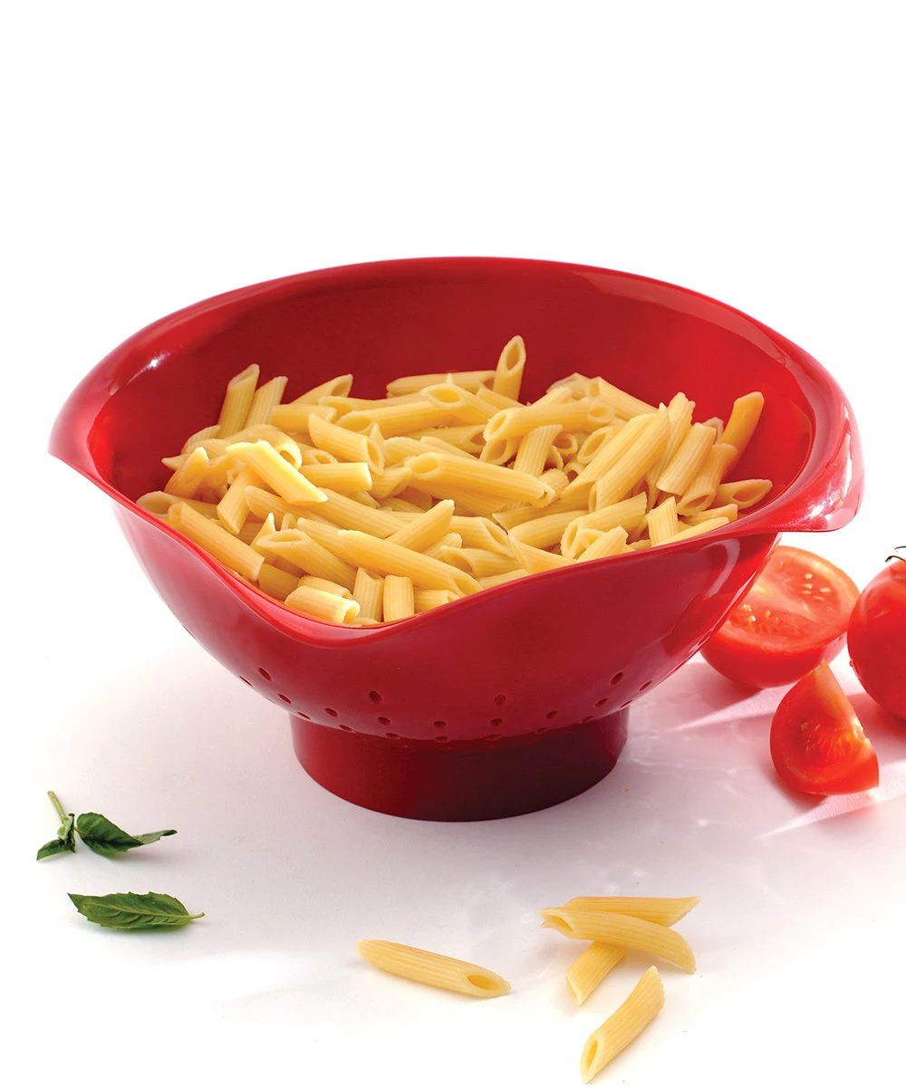 Featuring a tapered design and built-in handles and spout, this colander drains family-size pasta and salads in a flash.