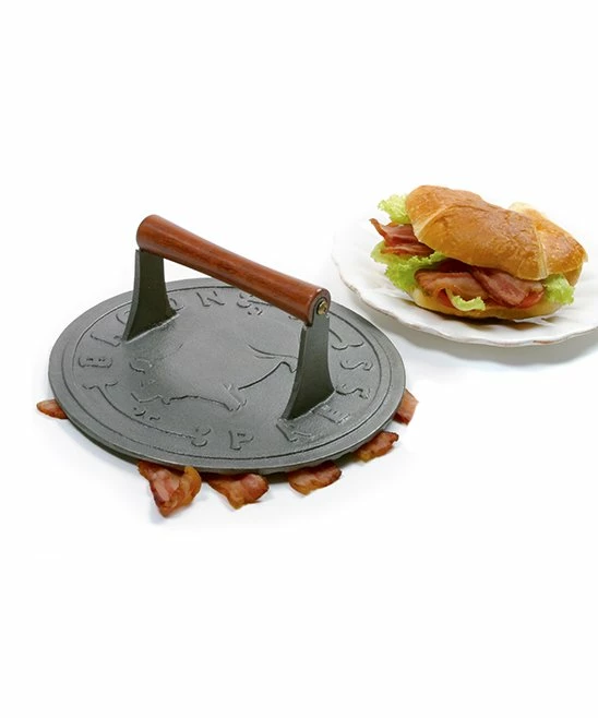 Ensure crispy, sizzling slices of bacon are evenly cooked with this cast iron bacon press, which flattens strips for even heat distribution. It’s also great for quesadillas.