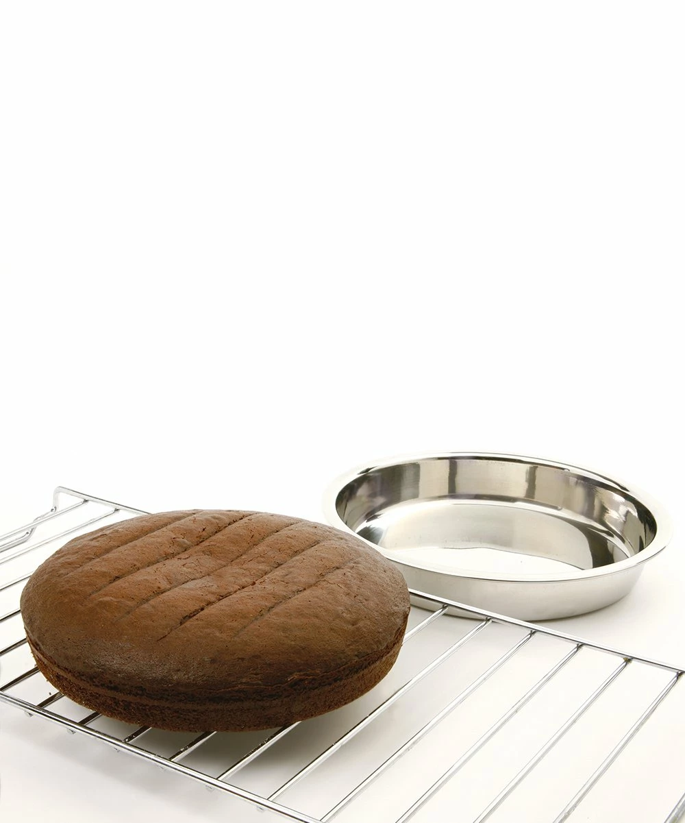 The ideal size to create luscious layer cakes, this pan is made out of heavy-gauge stainless steel with a mirror finish. The wide lip ensures easy handling.