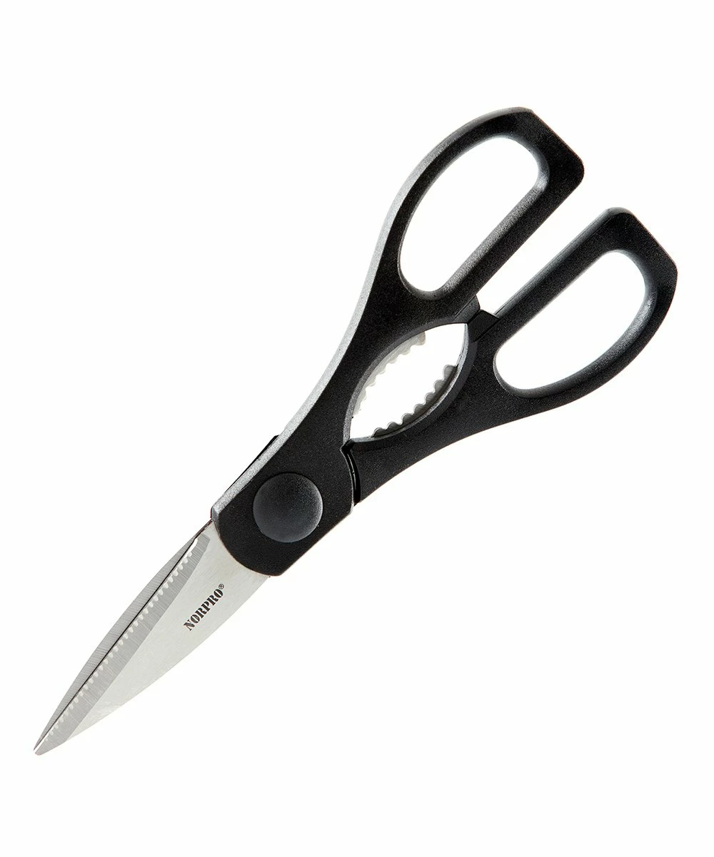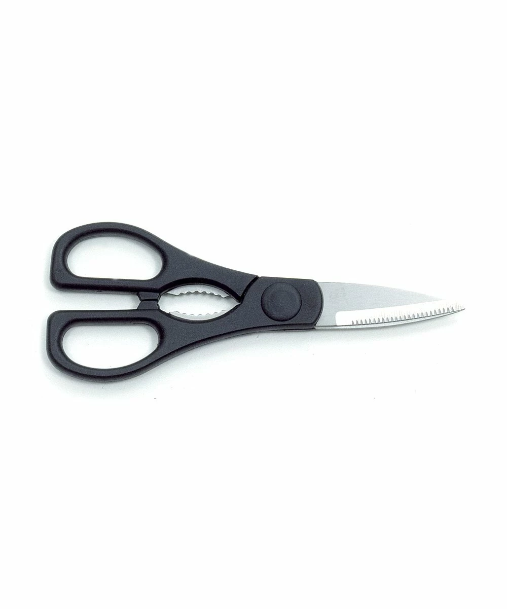 Ideal for cutting through fabric, paper, string, packaging and food, these quality scissors are made with heavy-duty stainless steel blades. The handle functions as a nutcracker and bottle opener to boot!