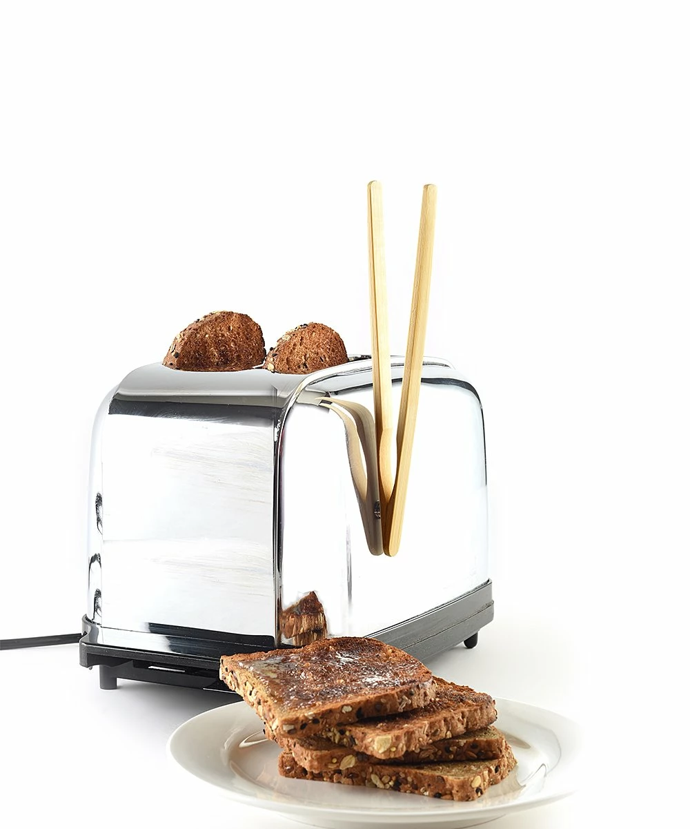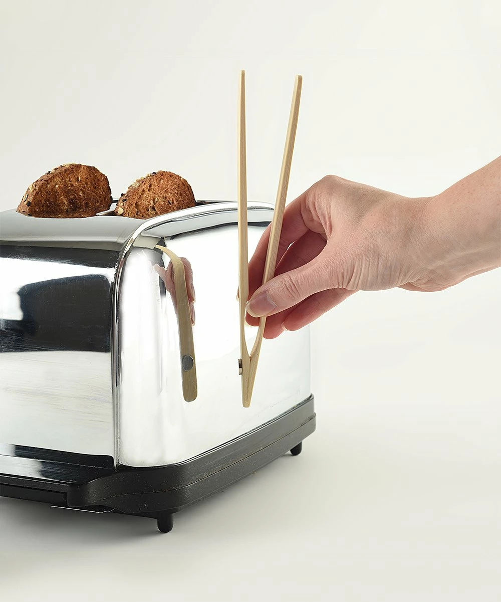 Ensure the only thing that gets toasted is your bread when you wield these bamboo tongs that help you safely retrieve your toast. A handy magnet provides convenient storage so you never misplace them.