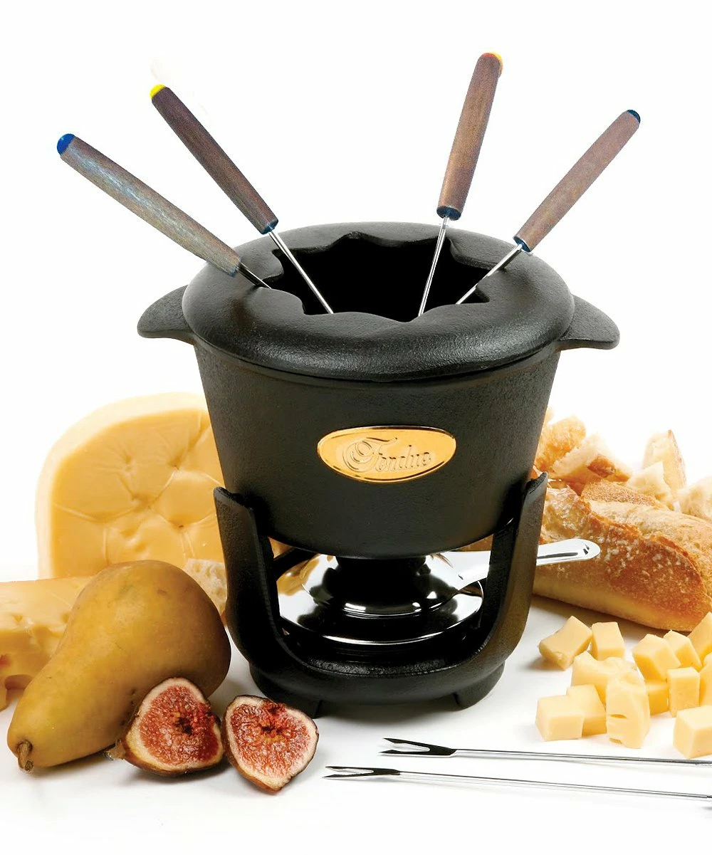Bring the sophistication of a fondue fiesta to the comforts of home with this cast iron pot. Serve with strawberries for melted chocolate, or use pretzels and bread for gooey cheese. Color-coded forks with stay-cool handles allow for easy identification between dinner guests.