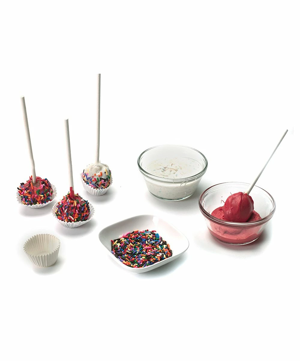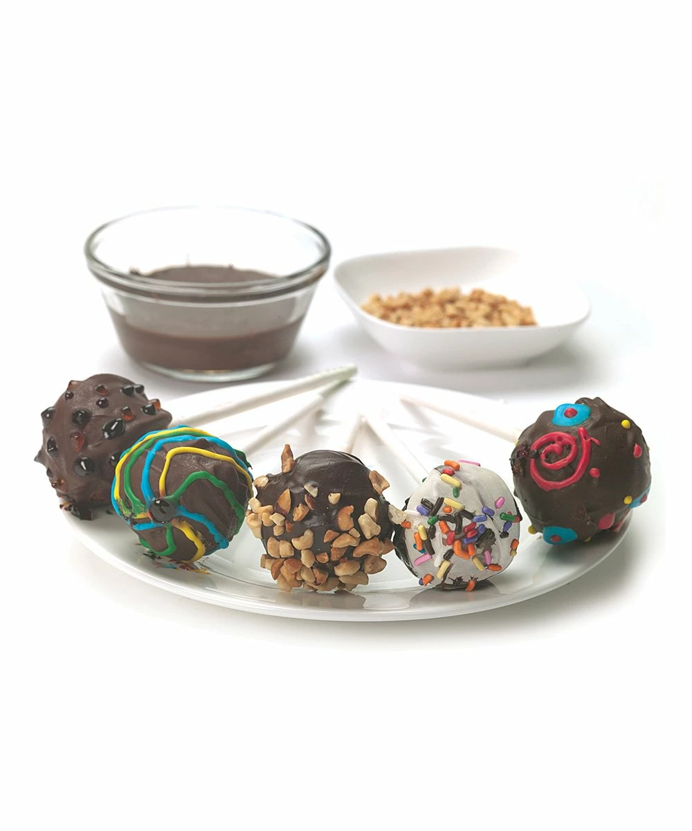 - Includes two-piece cake pop pan and reusable plastic sticks