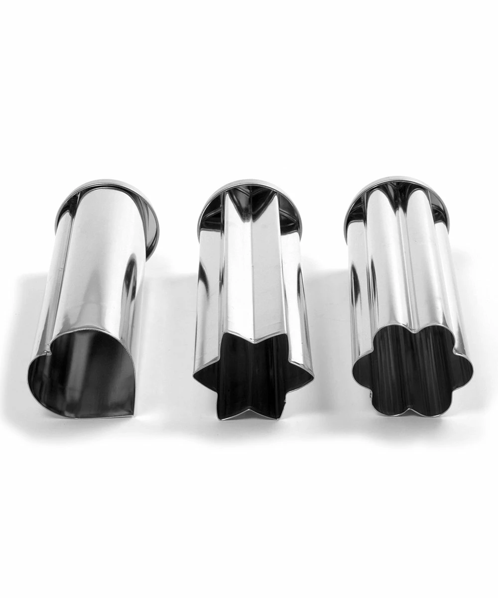 Ideal for hors d’oeuvres, this three-piece set includes a flower, heart and star mold that can be used with frozen bread dough, bread machine dough or other dough made from scratch.