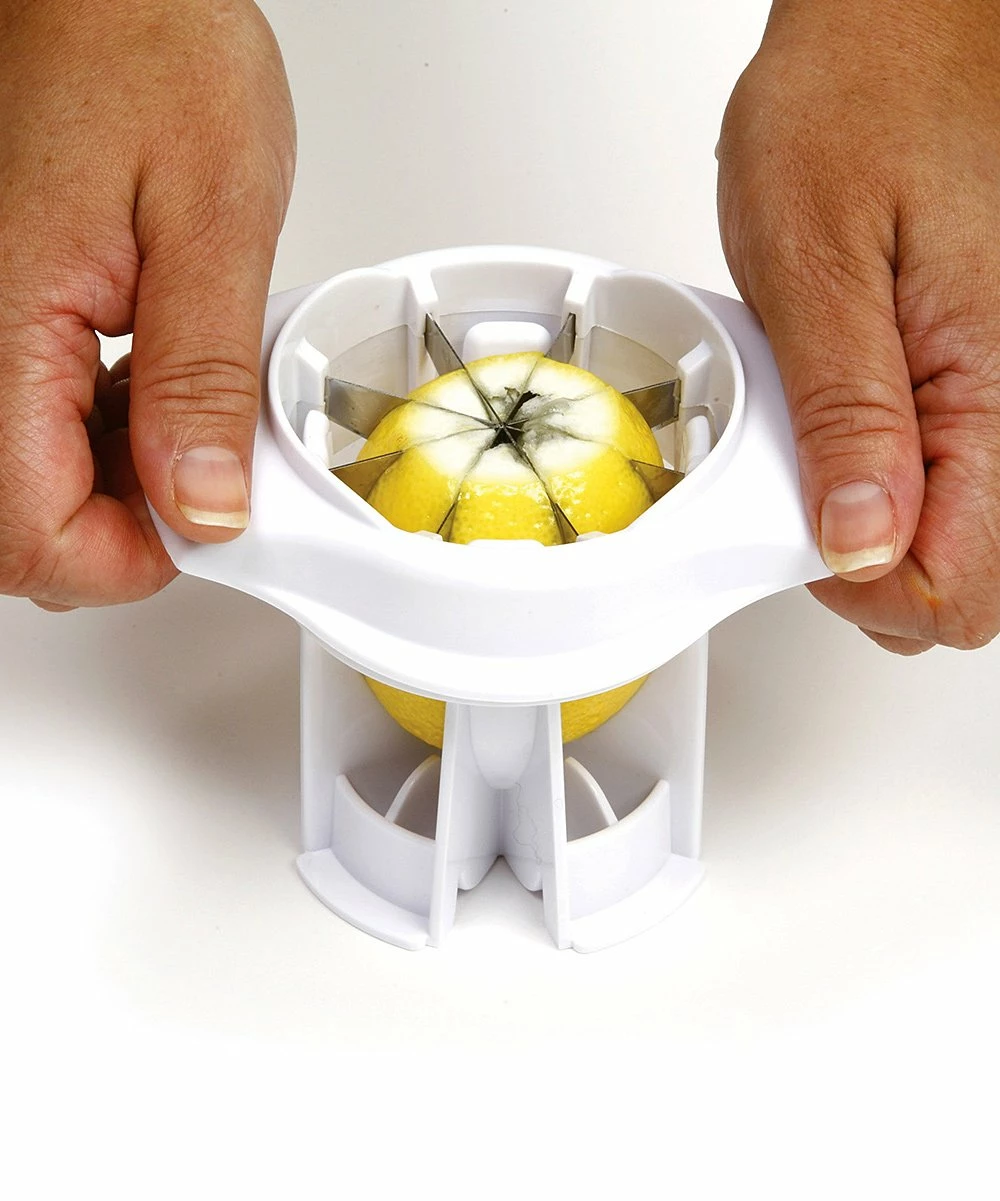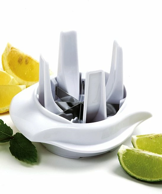Create citrus slices that are perfect for decorating glasses of basil lemonade or garnishing margarita fish tacos. This compact tool slices lemons or limes into eight perfect wedges.