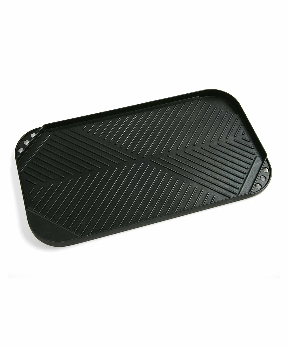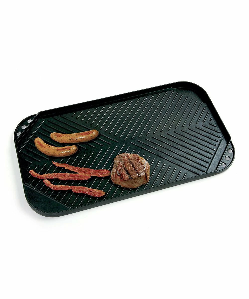 This ingeniously designed griddle makes cooking easier than ever and fits snugly over two burners. The raised areas are designed to lift food above excess oil.