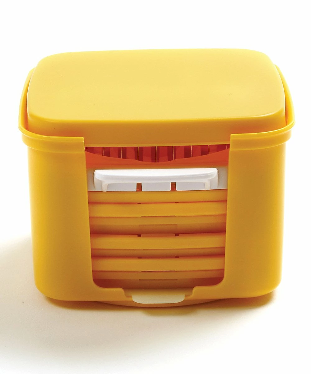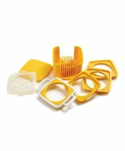 - Includes slicing box, handle, lid and four interchangeable wire blades
