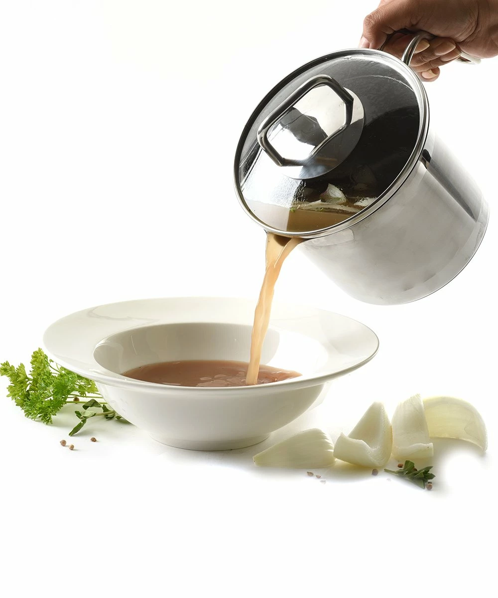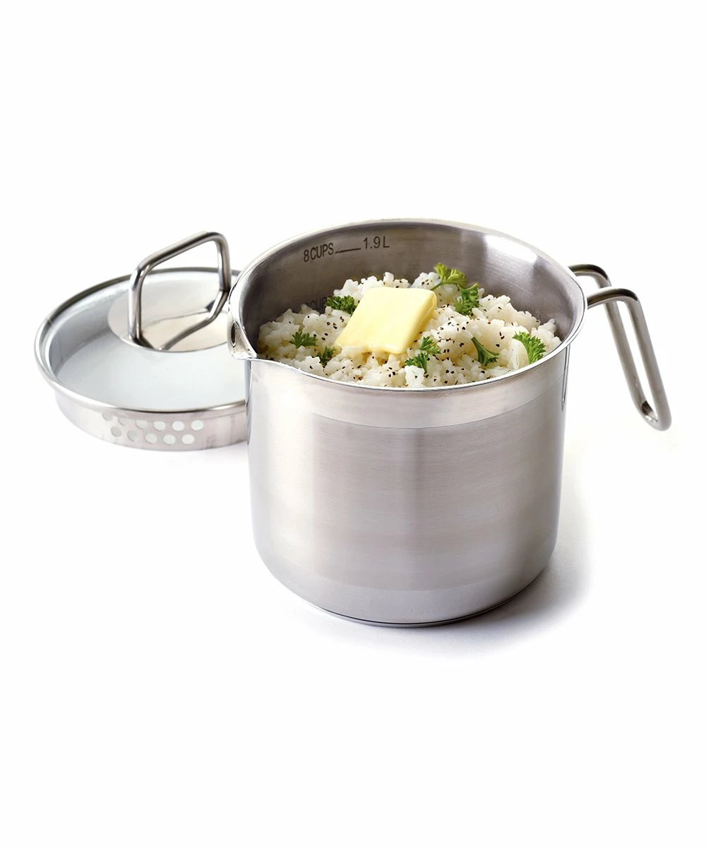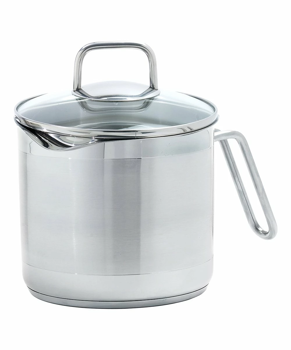With a specially designed pour spout to drain liquids with ease and a vented glass lid, this stainless steel multi-use pot can be used for mixing batters, heating soup and whipping up sauces.