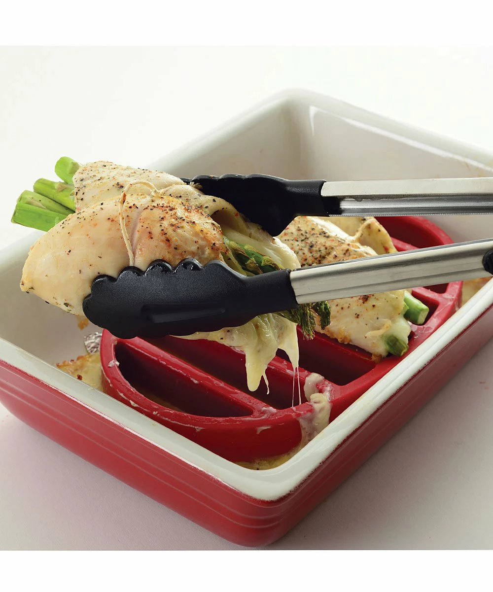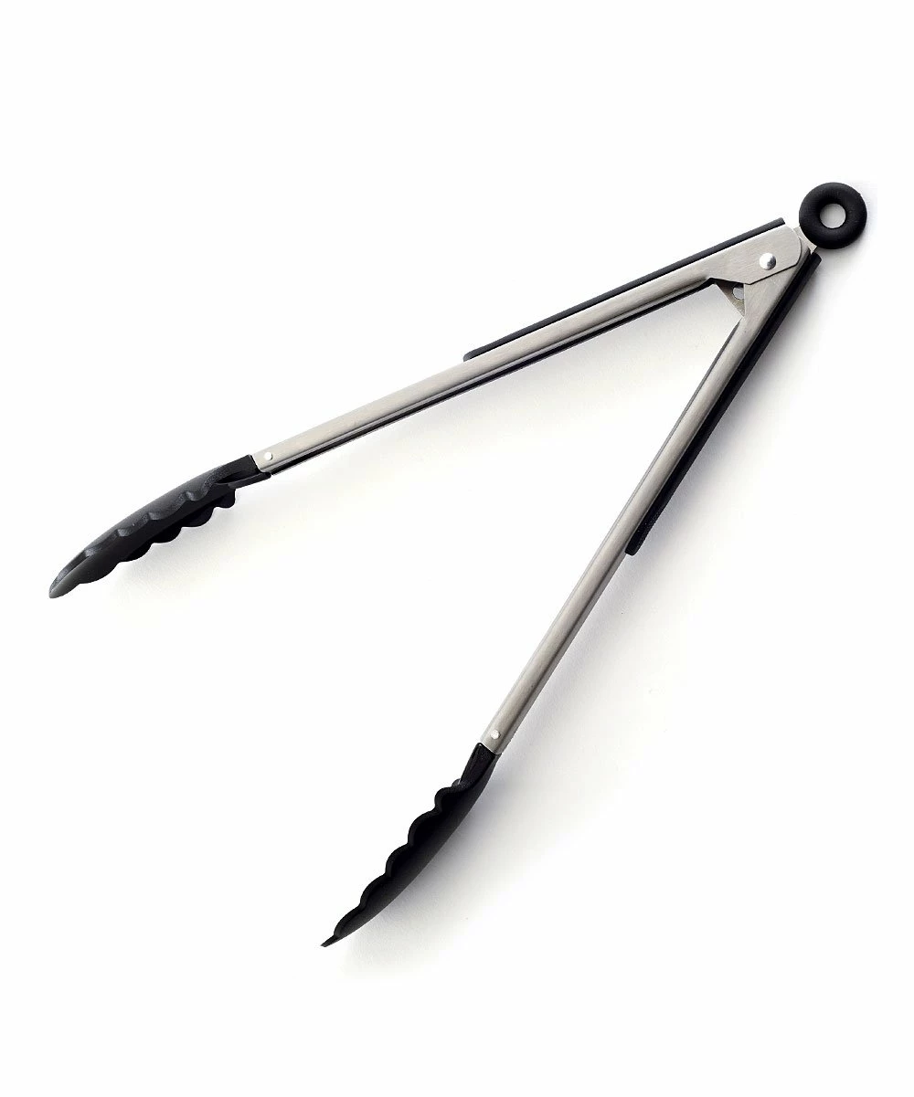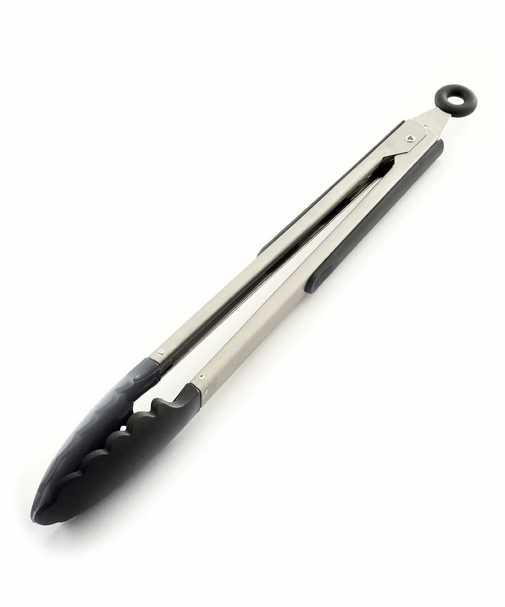 Locking in a closed position for easy drawer storage, these heavy-duty tongs will easily grasp virtually any kitchen item.