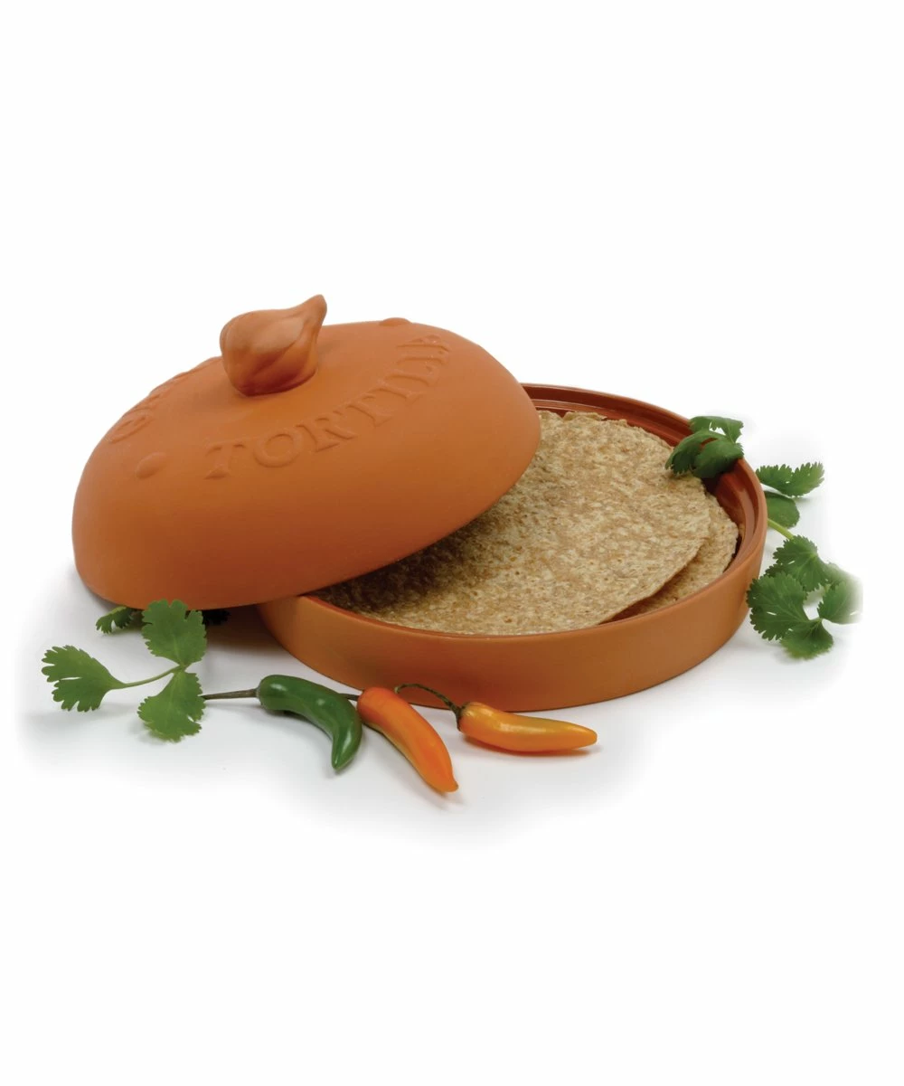 This dual-function warmer is perfect for garlic and tortillas. Use it to bake, warm and serve! It has a glazed base for a shorter baking time and easy cleaning. Check out the recipe