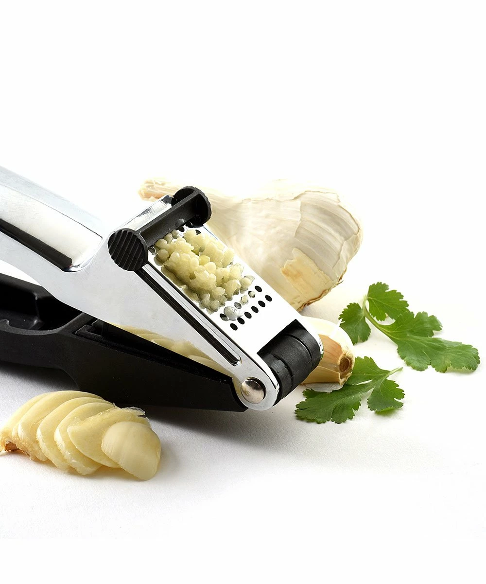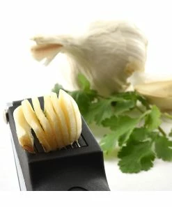 Mince or slice garlic with one handy device to make cleanup easy. The mincing side features a built-in scraper for getting every last bit.