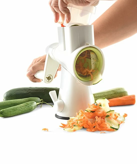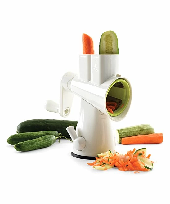 This handy tool makes it easy to grate or slice corn, veggies, fruits, cheeses or nuts in one motion. A vacuum base secures the entire cutter to a smooth countertop or other surfaces.