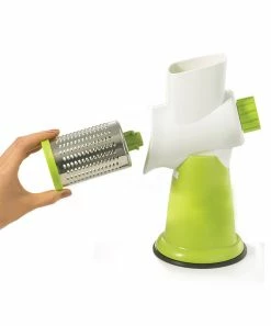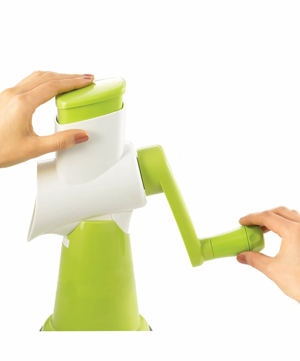 Prep food in a pain-free manner with this quick cutting tool that slices or grates ingredients with a simple turn of the handle.