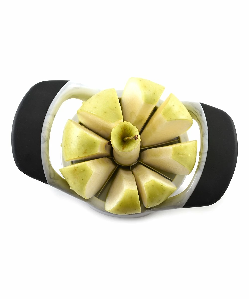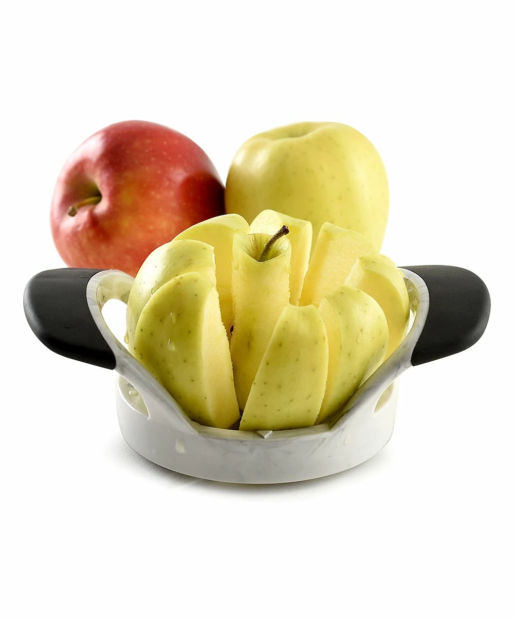 Slicing fruit will be a breeze with this slicer featuring convenient grip handles.