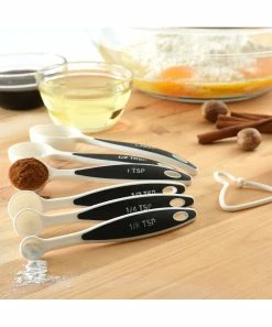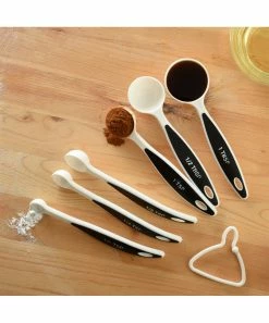 - Includes 1/8 teaspoon, 1/4 teaspoon, 1/2 teaspoon, 1 teaspoon, 1/2 tablespoon and 1 tablespoon