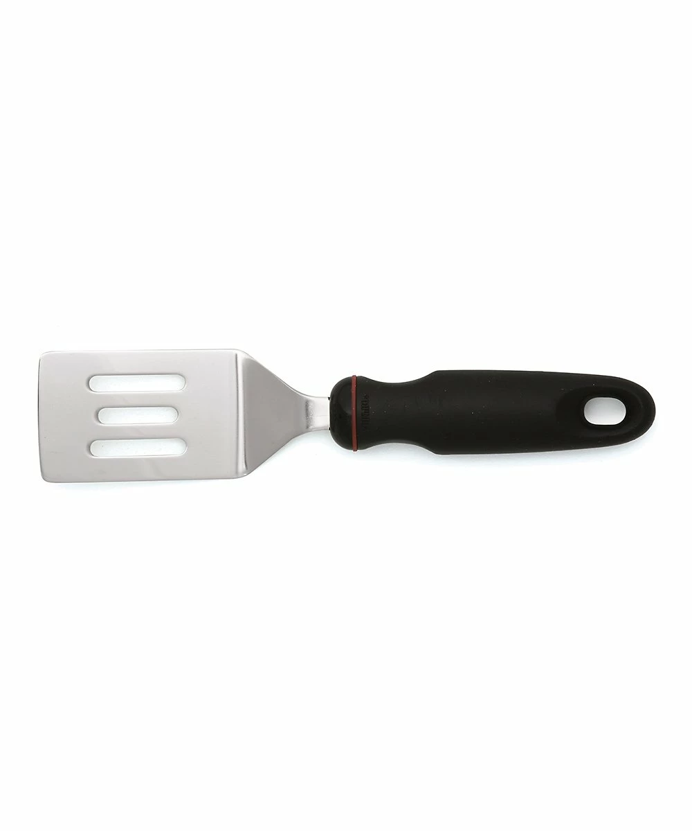 An oversize handle with finger indents brings ergonomic ease to this slotted spatula, while the soft Santoprene construction offers additional comfort.