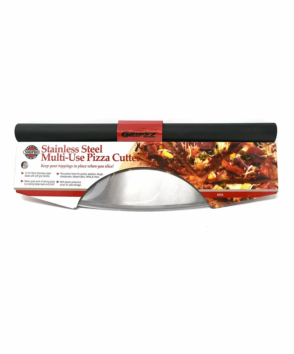 Cut pizza like a pro with this curved cutter featuring a durable stainless steel design and soft-grip handle.
