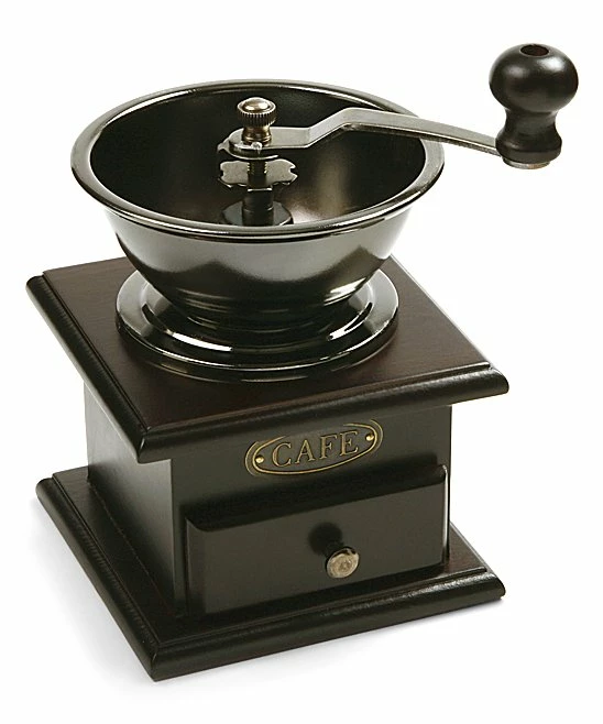 With a vintage look and rich chestnut finish, this coffee grinder is handsome enough to display on the countertop. The adjustable grinding mechanism allows coffee connoisseurs to mill beans anywhere from coarse to fine, and then it dispenses them into the drawer below.