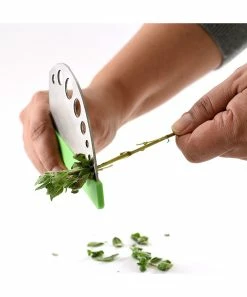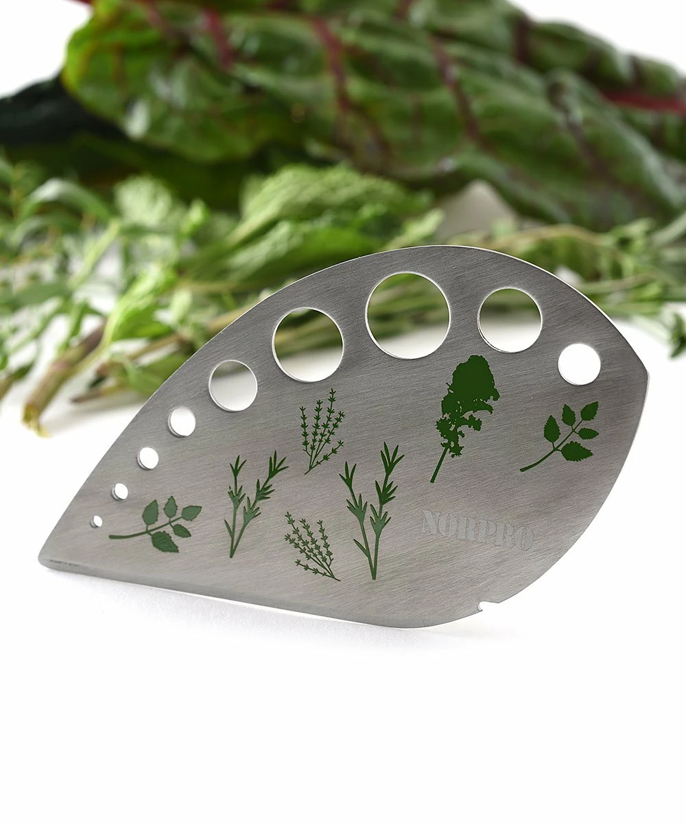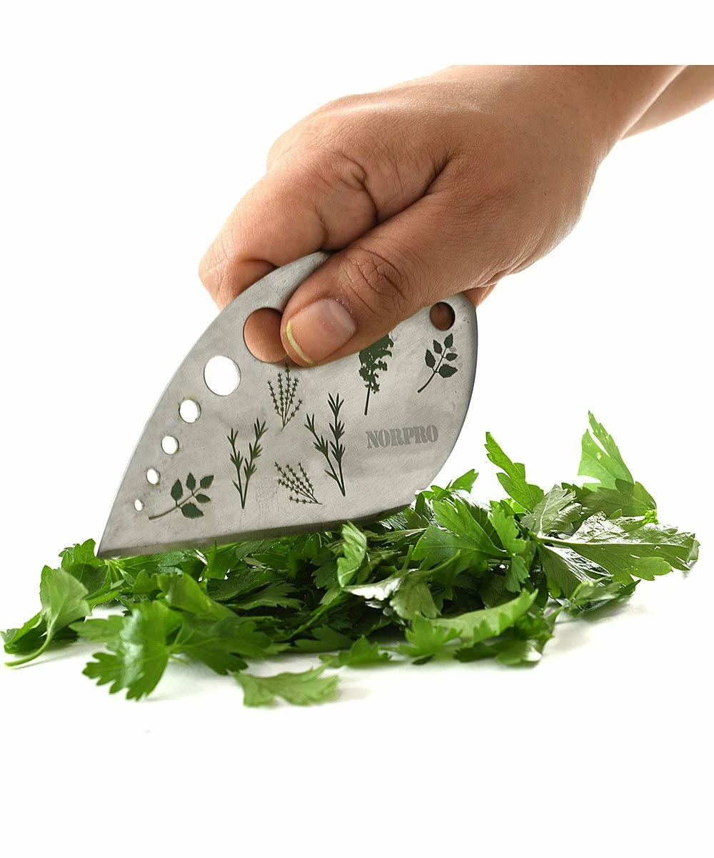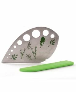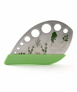 Strip the leaves from your herbs using the conveniently labeled holes or chop them up with the blade edge. A protective sheath covers the blade when not in use.