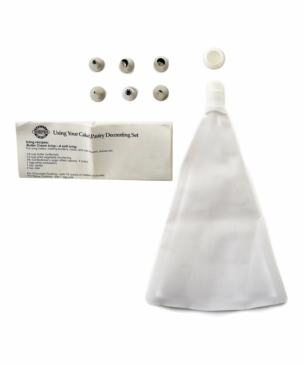 - Includes six tips, pastry bag, coupling, recipes and instructions