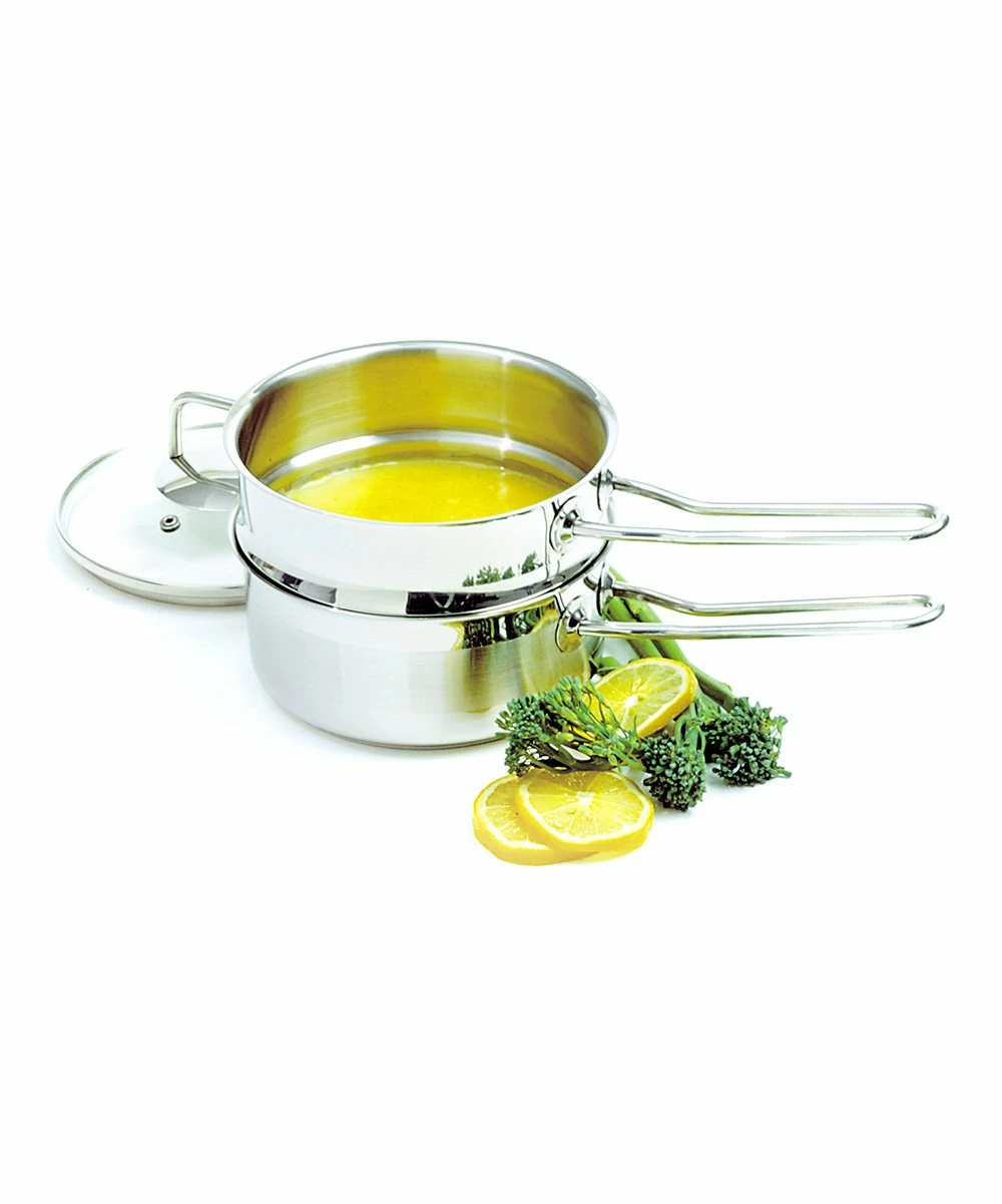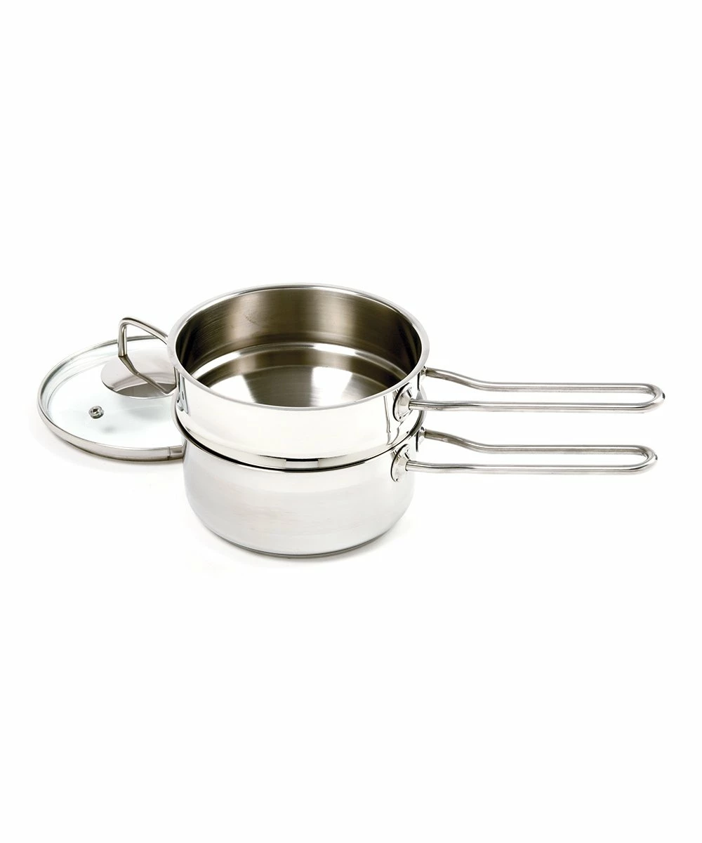Suitable for melting caramel, custard and sauces slowly and evenly, this double-broiler set comes with a coordinating vented glass lid to allow steam to escape, making it easy to keep tabs on how food is cooking.