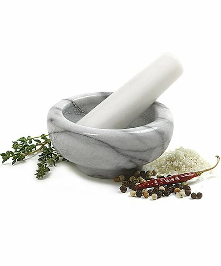 Grind up a savory spice blend for toppings, marinades, rubs and more with this marble mortar and pestle.