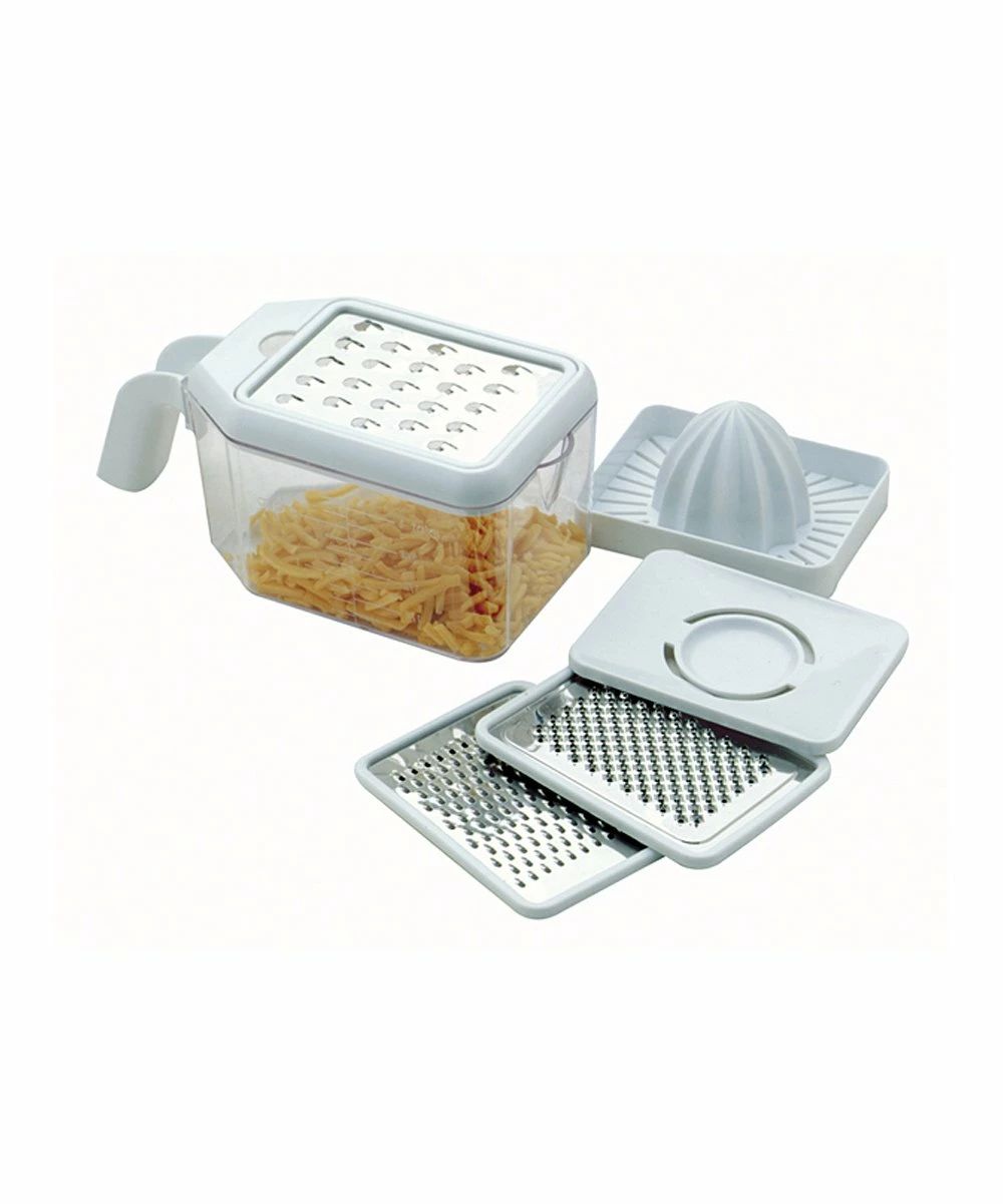 Shred or grate cheese and vegetables, separate egg whites from yolks or juice citrus fruits! This multi-functional tool is a workhorse for the kitchen. It even has dry and liquid metric measures in the catch box and a pour spout for easy use.
