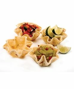 Place tortillas inside and bake for crispy, low-fat tortilla bowls. They’re nonstick so less oil is required and tortillas will come out easily. Use these bowls for making bread, serving salsas and creating molded desserts too!