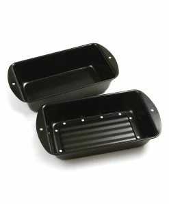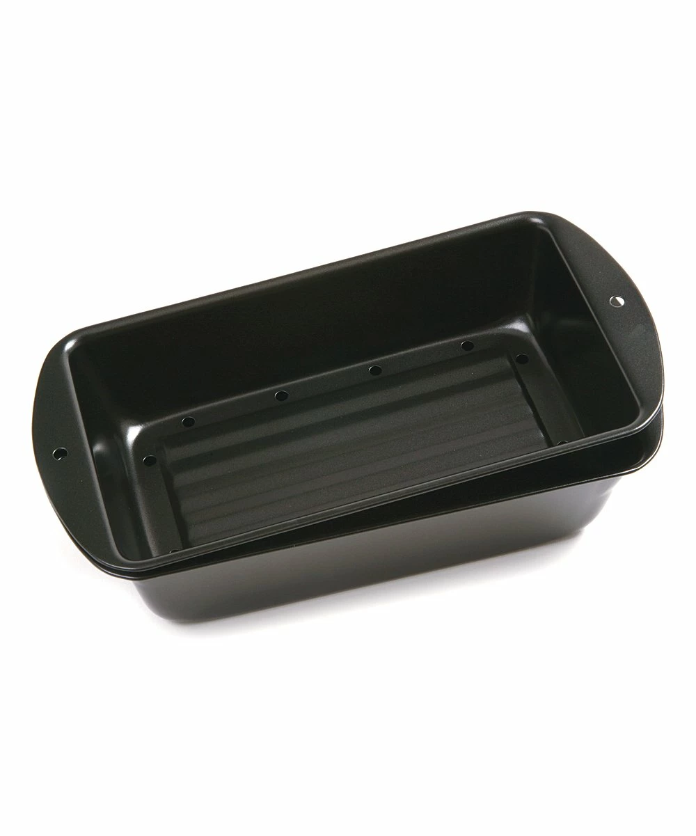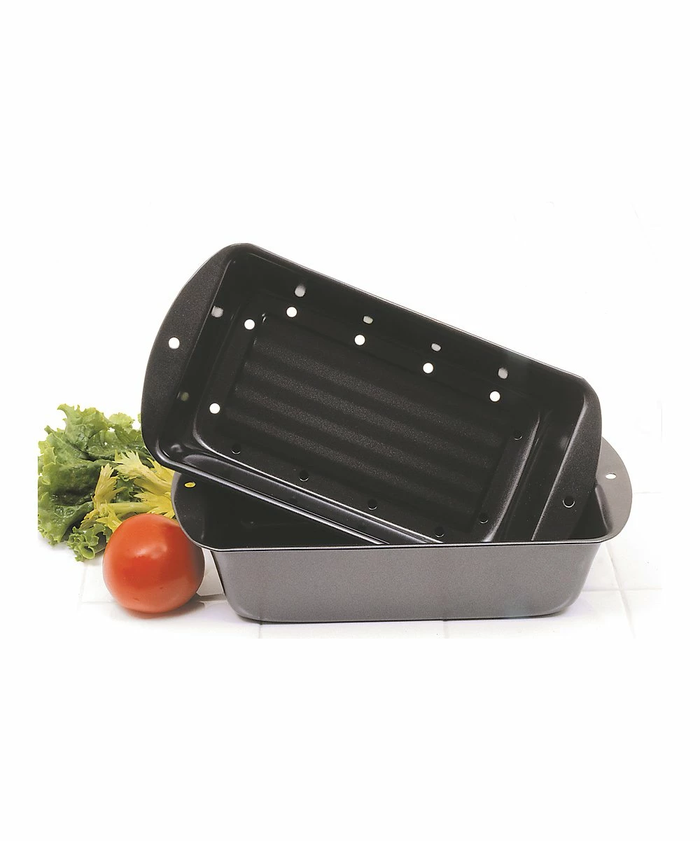 This two-piece pan set is perfect for baking loaves of bread, cakes, meat loaf and more! A unique, layered design allows fat to drain into the bottom pan and away from culinary creations, making this an easy, health-conscious addition to the kitchen.