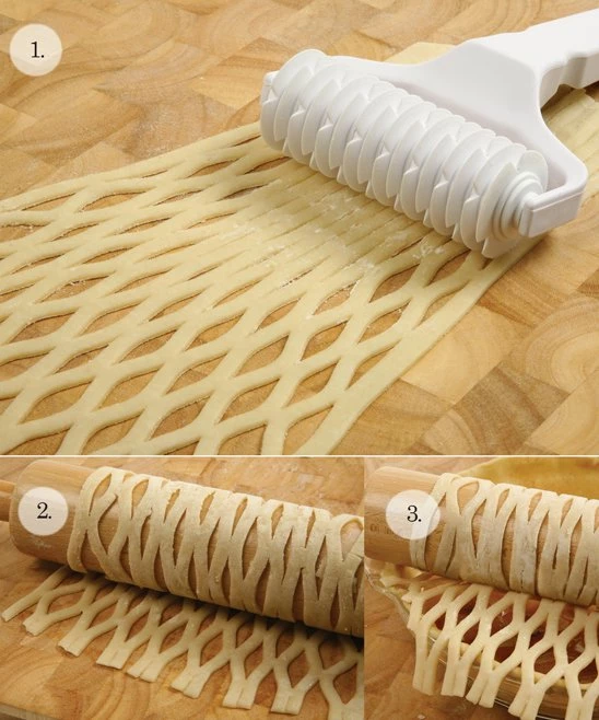 It’s the easiest way to make a lattice pie crust. Simply roll this tool from left to right, then top to bottom over a flat piece of pastry for a stunning creation.