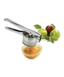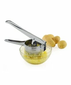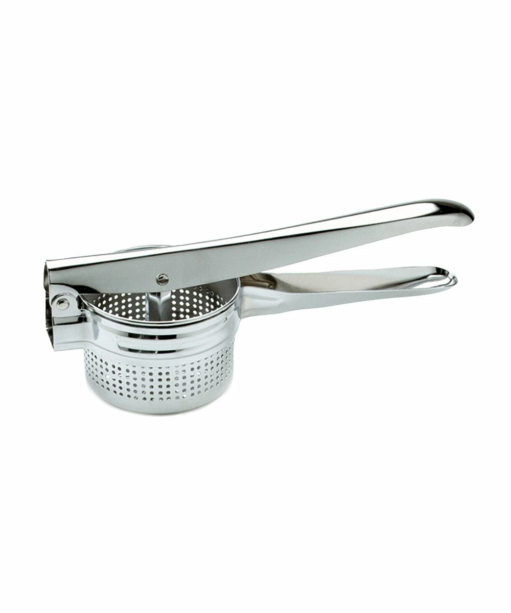 Create light, fluffy and lump-free potatoes with this potato ricer that incorporates air into boiled spuds. It features a shiny triple-chromed finish and fits over pots and bowls for no-mess use.