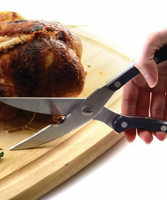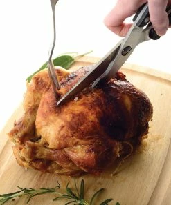Ideal for poultry, twine or crab, these quality poultry shears boast full-tang serrated blades for accurate slicing. Spring tension assists with control, while the curved blades reach around bones and joints.