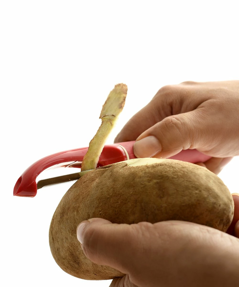 Stylish and functional, this sturdy essential features a strong, comfortable handle for a secure grip that prevents fatigue. It also boasts a sharp stainless steel blade for efficient peeling.