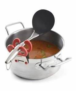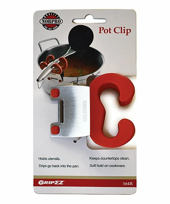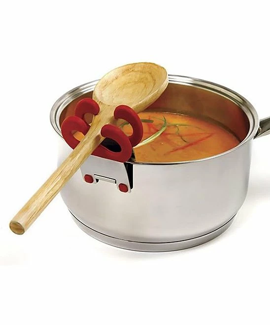 Errant drips will fall right back into the pot when you utilize this clip which offers a sturdy silicone body designed to securely hold large utensils.