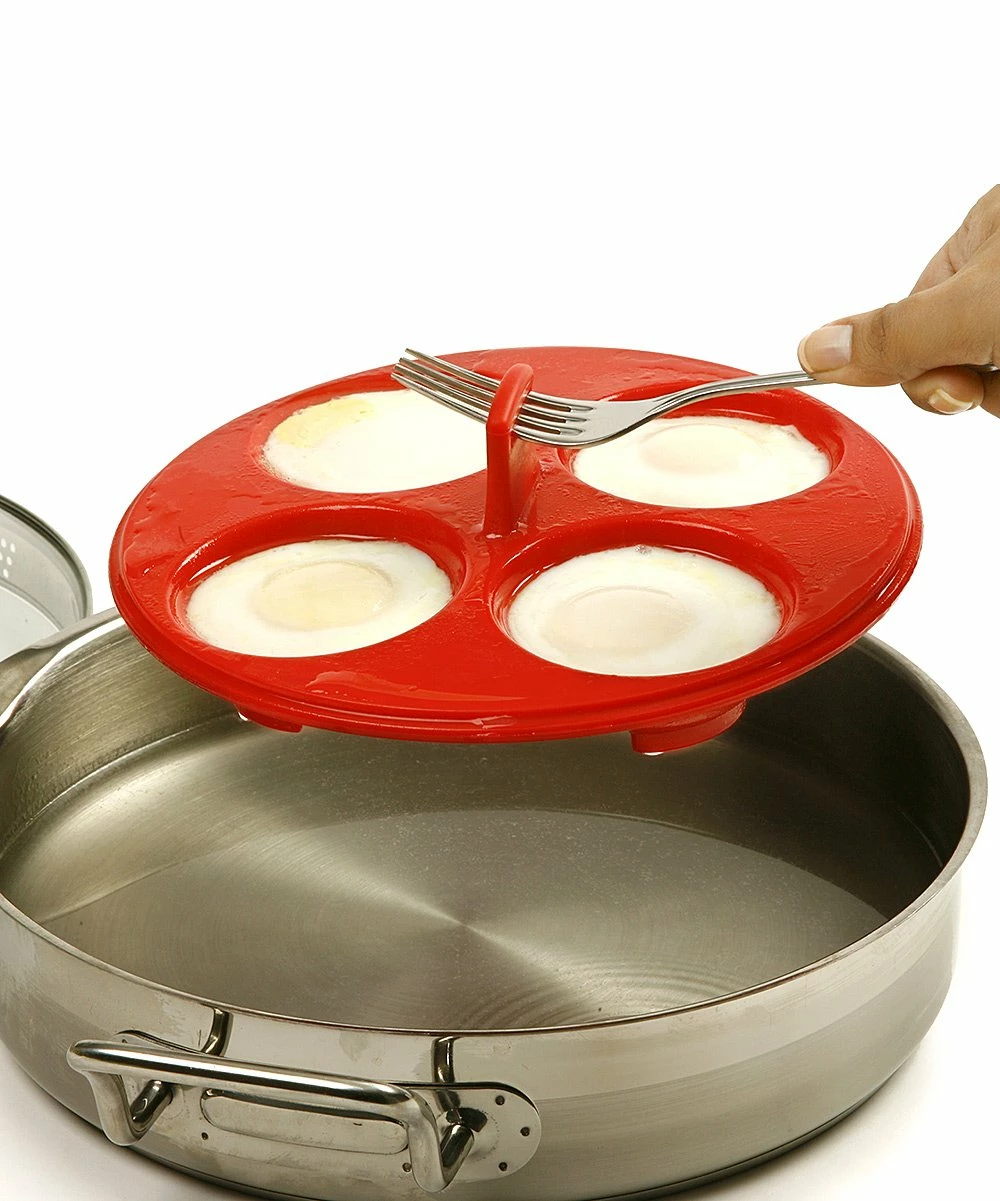 Create perfectly round poached eggs with this flexible tool, featuring a nonstick, heat-resistant silicone construction for easy cleanup.