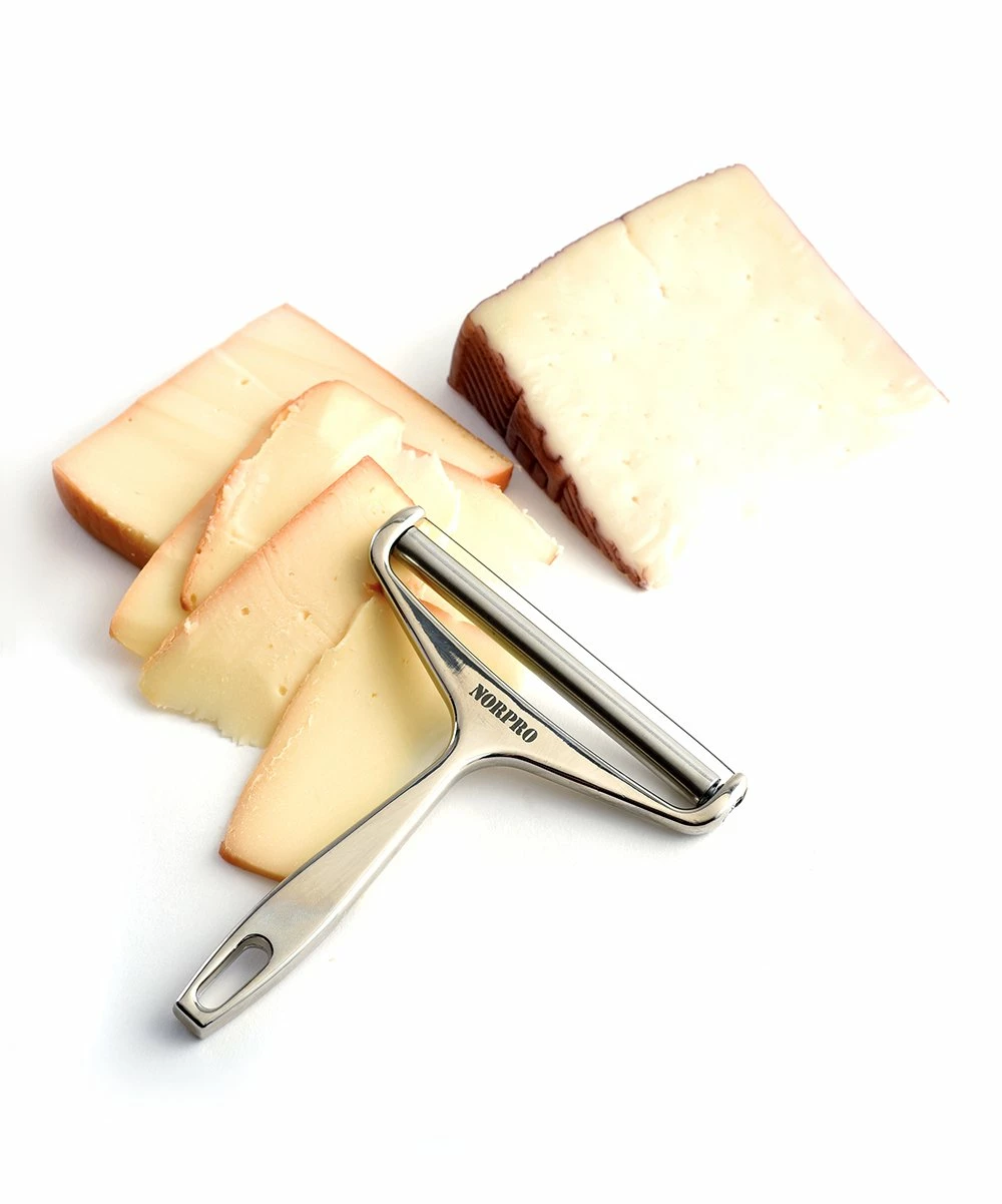 Cut cheese neatly, evenly and easily every time with this cheese slicer. It adjusts to different thicknesses for slices that are perfect in sandwiches, on cheese boards or upon pizza. It includes an extra stainless steel wire so this kitchen tool is always ready to go.