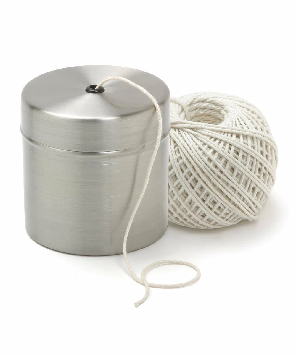 This holder keeps cooking twine clean, tidy and ready to tie up or truss a turkey, poultry or other meats at a moment’s notice. It’s filled with food-safe, unbleached and natural cotton twine.